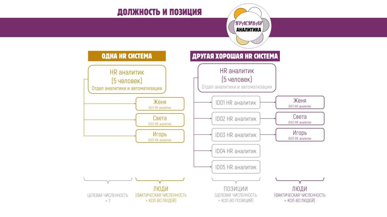 На картинке изображены 2 варианта хранения данных в 2х разных HR системах (ForPeople и другой хорошей системы ;)