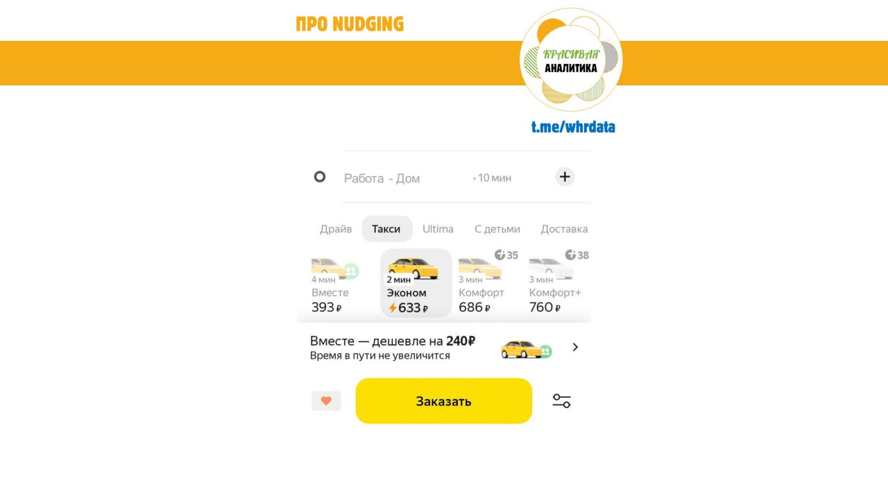 История такая: я сейчас езжу на такси каждый день и, соответственно, каждый день пользуюсь желтым приложением. И вот вчера, очередной раз увидев сообщение «+ 32 р и приедет Комфорт+» я вспомнила эту историю про таксистов Uber-а и очень хорошо их поняла. Каждый день в приложении возникают эти вот «мотивирующие» подсказки про повышение тарифа или поездки по условно пониженной цене за счет использования накопленных баллов или совместной поездки или какие-то еще сообщения, которые подталкивают меня что-то сделать.