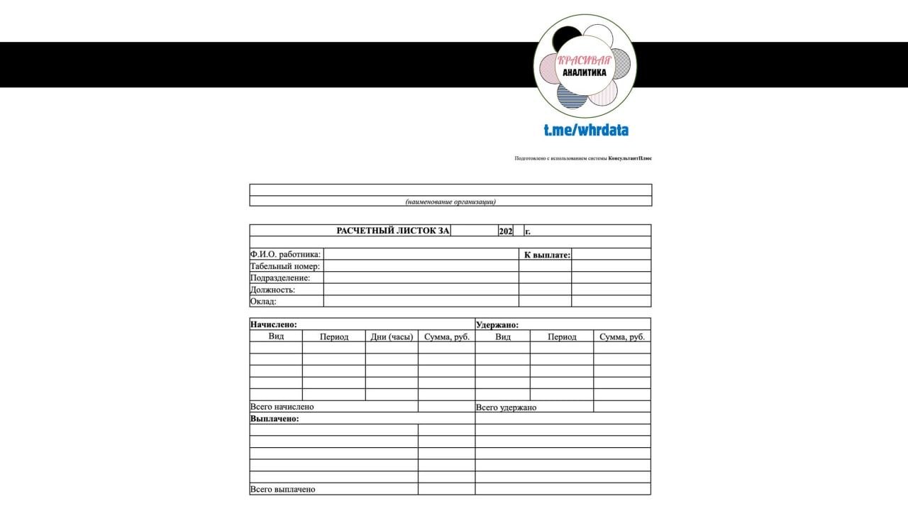 P.S. надеюсь все поняли, что картинка унифицированного расчетного листа это стёб, конечно для сотрудников все было более красиво и понятно