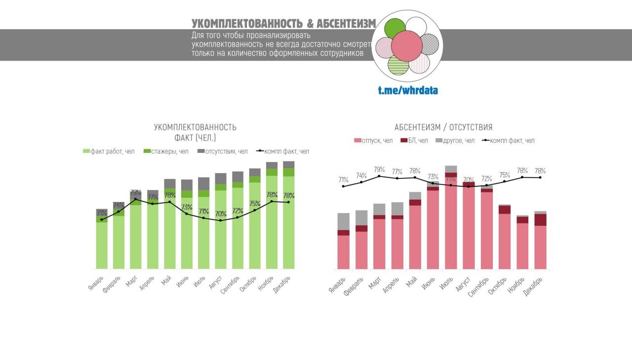 Но кроме текучести и количества поданных заявлений на увольнение, сейчас особенно важно смотреть на то что происходит с оставшимися, а именно анализировать отсутствия, их причины и длительность, сравнивать динамику