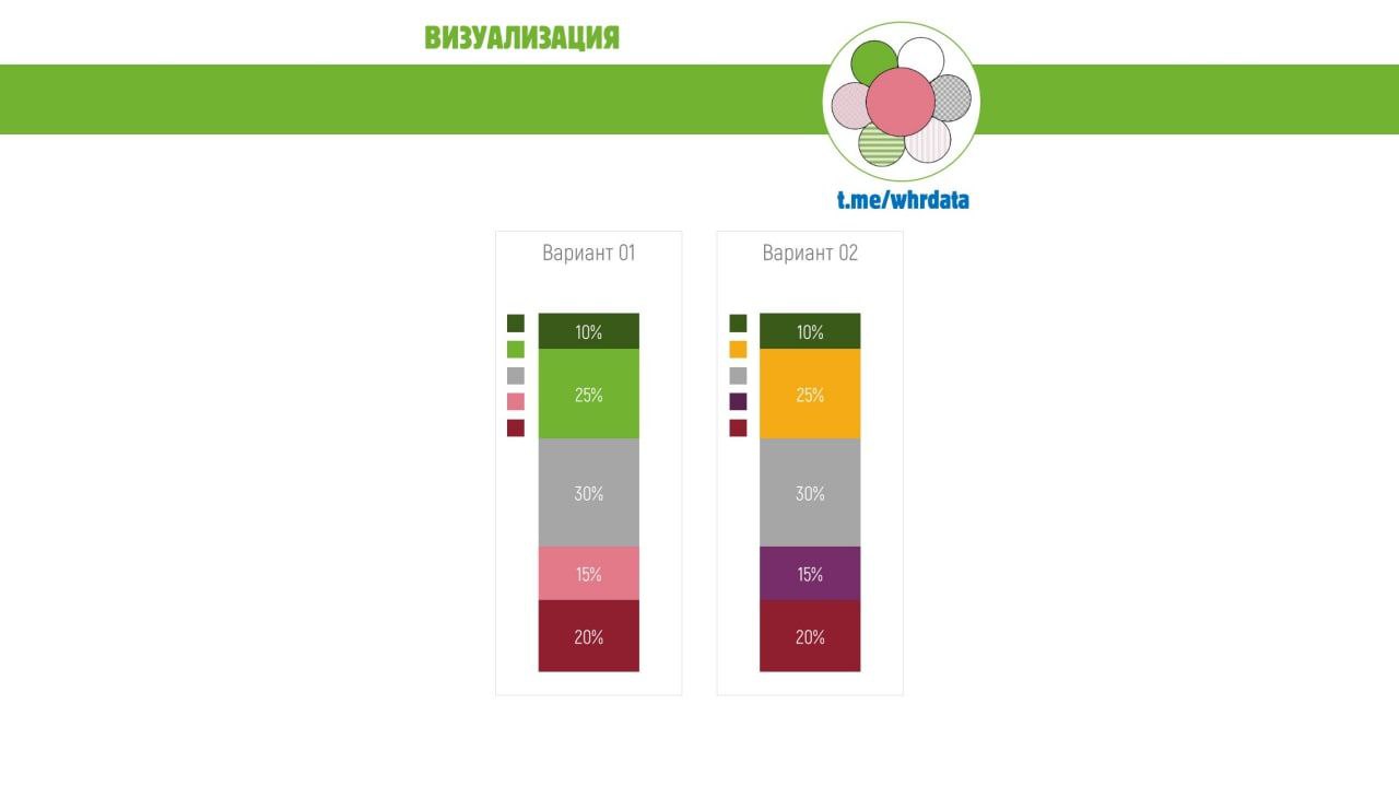 Одну и ту же диаграмму с одними и теми же данными можно закрасить разными вариантами наборов цветов.