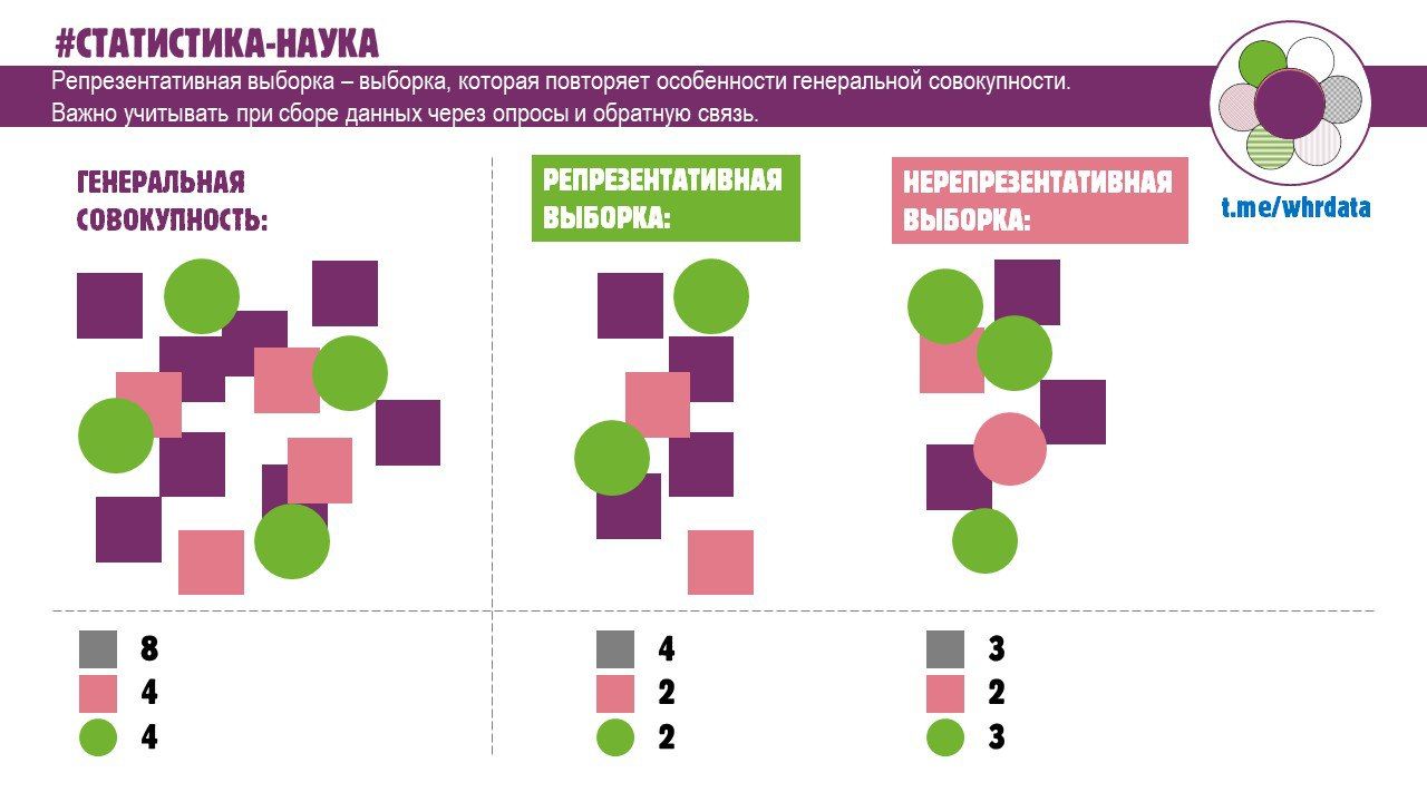 При сборе данных через пульс-опросы, анкеты, чат-ботов и другие источники, важно помнить про репрезентативность выборки.