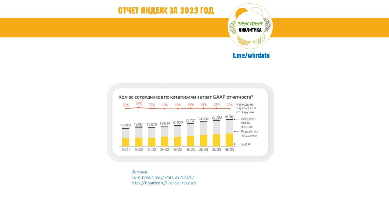 Опубликовано20 февр. 2024 г.#HR-аналитика+1Годовой отчет Яндекс 2023Годовой отчет Яндекс 2023: количество сотрудников, средний возраст, доля женщин и разработчиков, расходы на персонал
